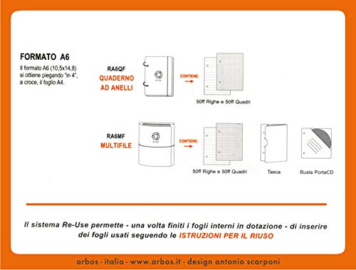 foglio di istruzione per il riuso dei fogli. Possibilità di download gratuito di rigature a agenda dal sito Arbos