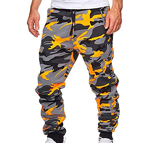 ARbuliry Pantaloni mimetici da Uomo, Pantaloni Sportivi da Uomo Elasticizzati per la Corsa e Pantaloni da Uomo Resistenti e Traspiranti quotidiani per Tutto L'Anno (Arancione L)