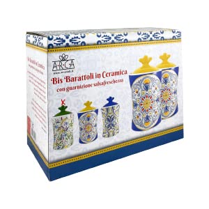 ARCA - Bis Barattoli Ceramica Decorata Con Guarnizione Salvafreschezza - Amalfi - Mediterranea - Lemon - Capri - Spring - Vietri (CAPRI)
