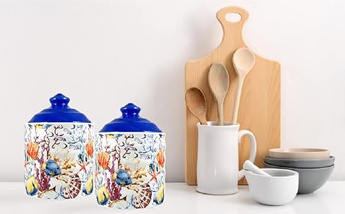 ARCA - Bis Barattoli Ceramica Decorata Con Guarnizione Salvafreschezza - Amalfi - Mediterranea - Lemon - Capri - Spring - Vietri (MEDITERRANEA)