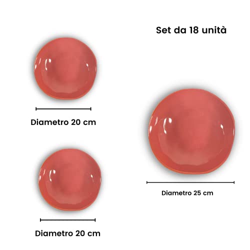Arca Servizio Piatti, Set Piatti Reactive Salmone 18 Pezzi | Piatti Colorati Ceramica, Set di Piatti Moderni | Piatti Irregolari per Set da Tavola Originale, 25 e 20cm