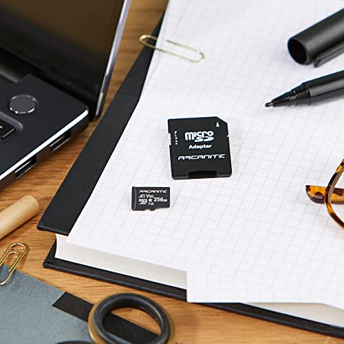 ARCANITE, 256 GB MicroSDXC scheda di memoria con adattatore SD, A1, UHS-I U3, V30, 4K, C10, Micro SD, Velocità di lettura fino a 90 MB/s