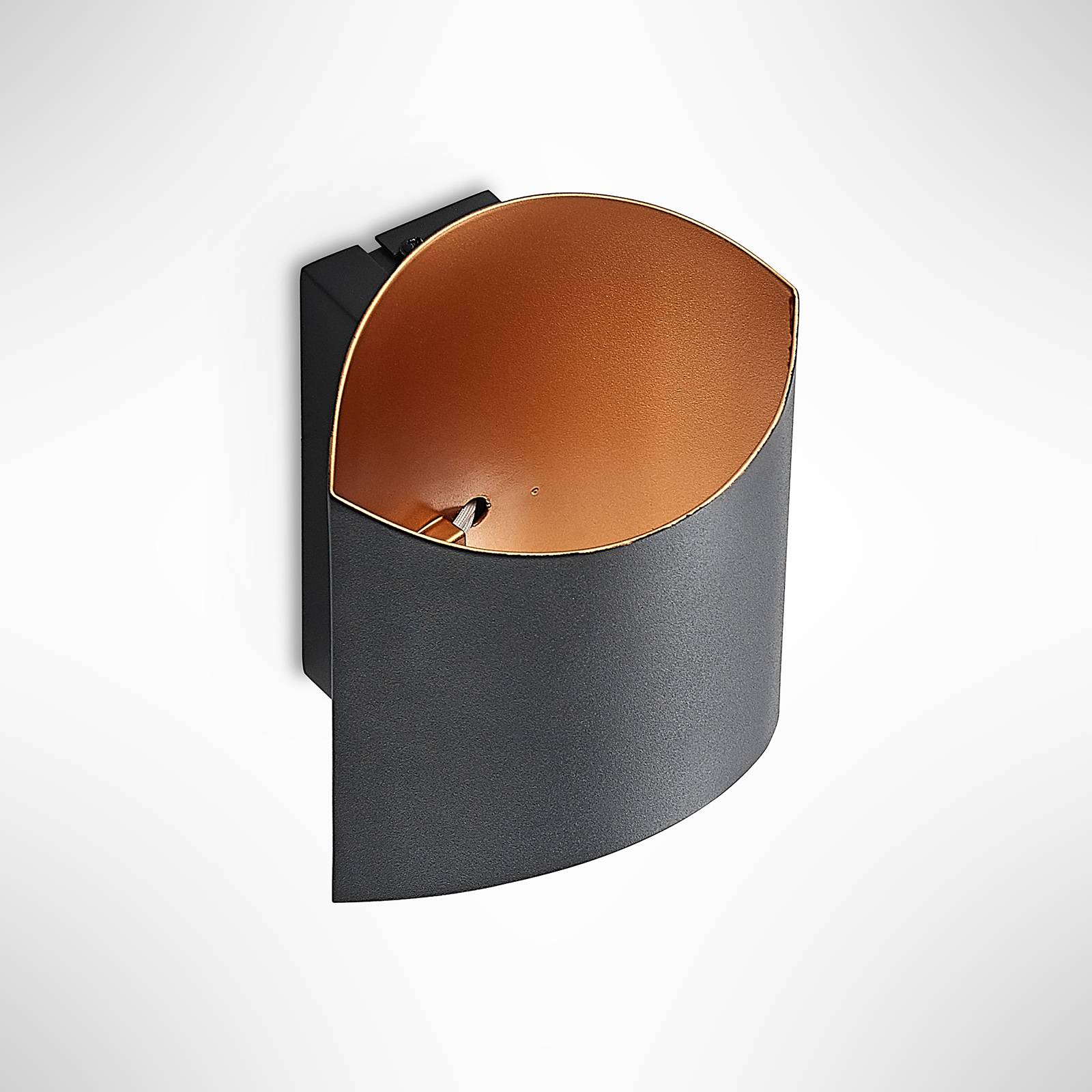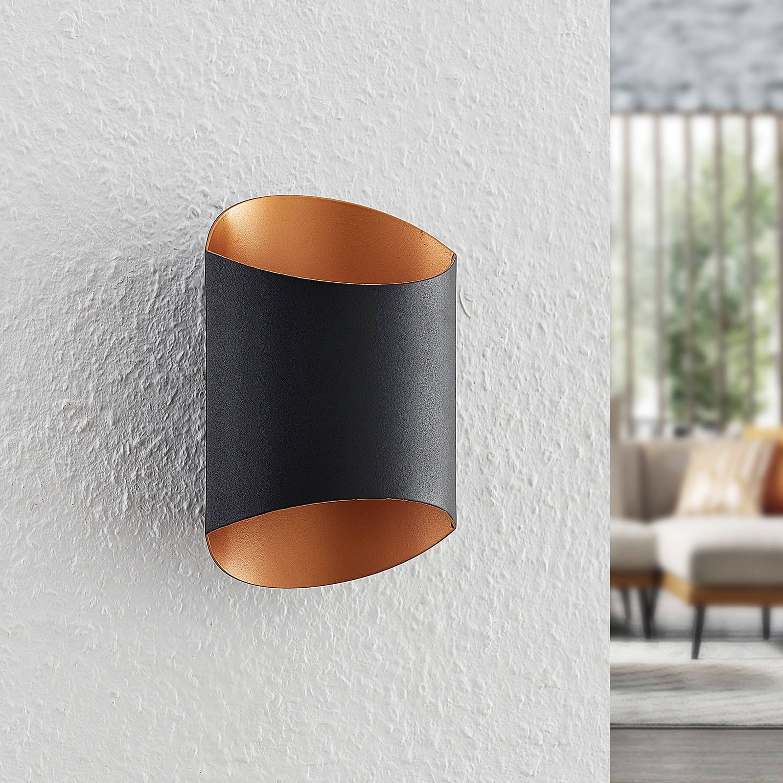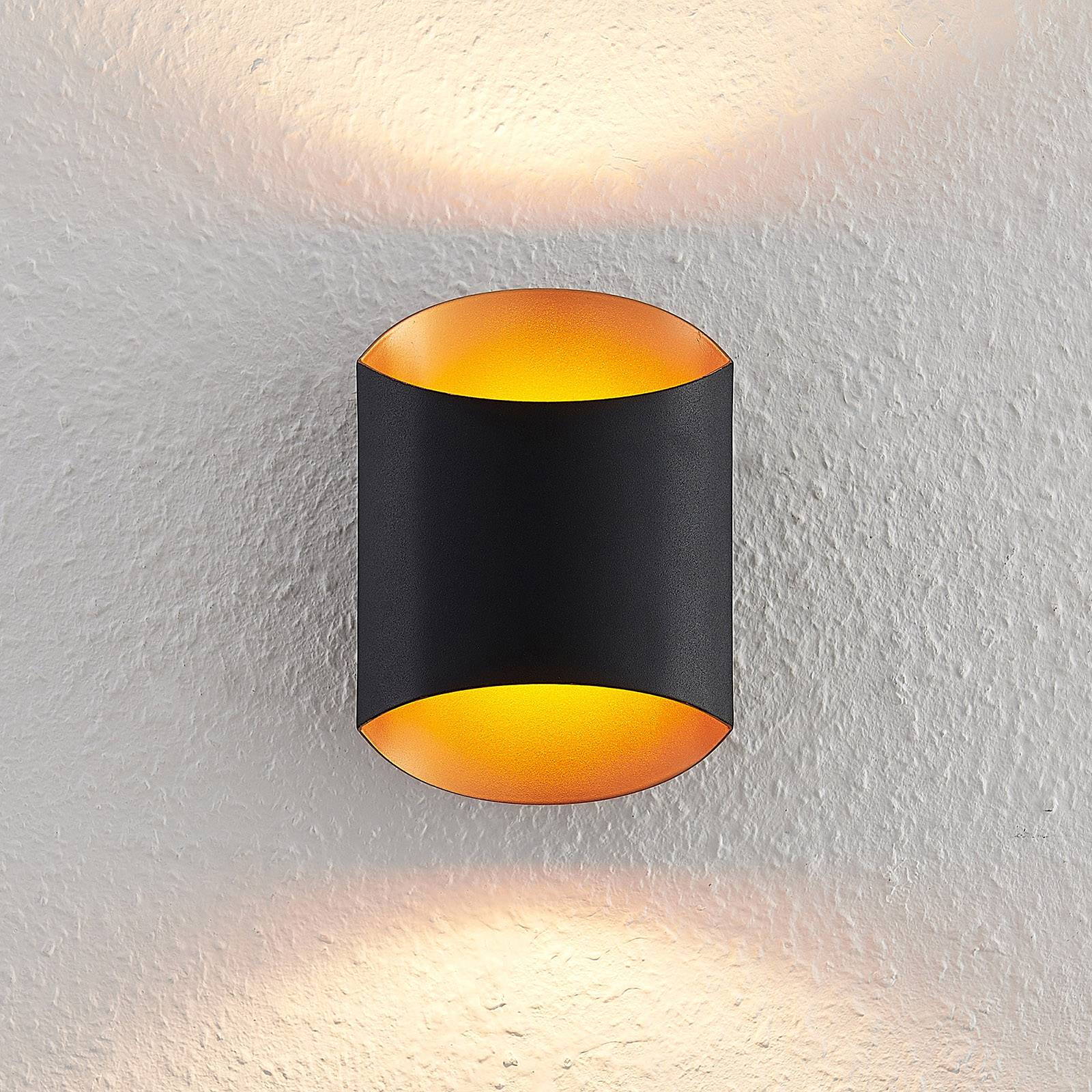 Lampada da parete Ayaz di colore nero-oro in alluminio per una bella luce nel soggiorno e nel corridoio Ayaz ha un involucro in alluminio splendidamente curvato ed è una fonte di luce che si presenta sempre bene con la sua luce accogliente. Poiché la parte posteriore sporge più in alto e/o in basso, il lato interno dorato della luce è chiaramente visibile e quindi si beneficia anche otticamente dell'elemento di illuminazione di tendenza in nero e oro. La finitura oro è un vero e proprio highlight anche per quanto riguarda l'effetto luce, perché la luce viene irradiata da essa in modo meravigliosamente caldo e accogliente. Poiché c'è uno schermo nella parte anteriore e l'illuminatore non è direttamente visibile, c'è anche una luce priva di abbagliamento, che è sempre apprezzata in tutta la zona giorno. Nei corridoi, l'apparecchio a parete con efficiente tecnologia LED si presta molto bene come luce di orientamento morbida quando si cammina, nella zona giorno o nella camera da letto l'ambiente trae grande beneficio anche da questa accogliente fonte di luce, che può essere accesa al momento opportuno al posto della fonte di luce principale.