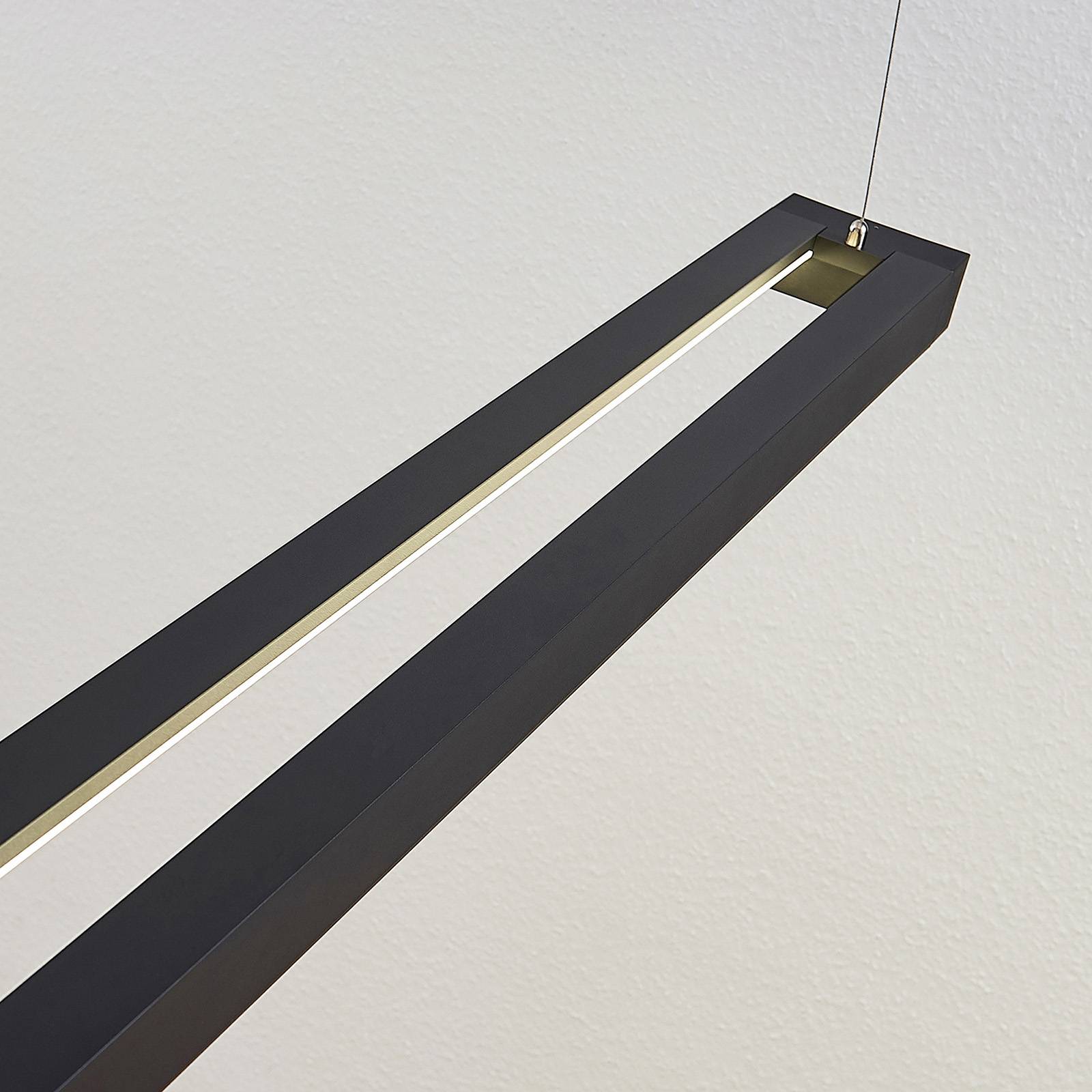 Lampada a sospensione a LED allungata Cuna in nero Cuna si adatta bene agli uffici e fornisce un'illuminazione ad ampio raggio, l'angolo del fascio dei LED è di 120 gradi. I LED emettono una luce bianca universale che permette una buona concentrazione per un lungo periodo di tempo. Il corpo dell'apparecchio ha una forma angolare e una finitura superficiale nera, in modo che l'apparecchio a sospensione si adatti bene agli interni moderni. Dati tecnici: - Angolo del fascio 120 - Grado di resistenza agli urti IK03 - Colore chiaro bianco universale - SDCM < 5 - Opzione per il cablaggio passante
