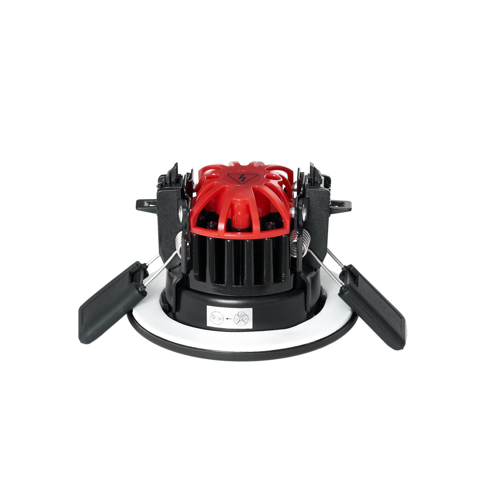 a tal fine è presente un interruttore DIP sull'alloggiamento. L'apparecchio da incasso a LED ha quindi molteplici funzioni ed è una sorgente luminosa efficiente ed efficace che può essere utilizzata anche in gruppo per fornire un'illuminazione adeguata. L'apparecchio è dimmerabile e può essere regolato in luminosità con un dimmer LED a taglio di fase discendente e uno a taglio di fase discendente.