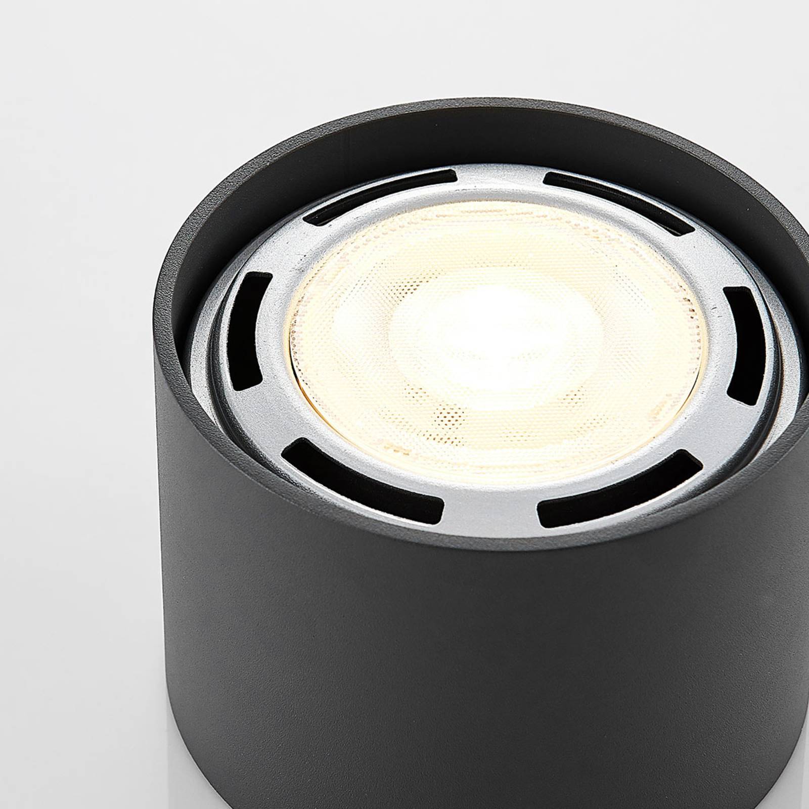 Un'attrazione grigio scuro: il faretto da soffitto Mabel La forma rotonda del faretto Mabel è elegante, la luce viene emessa specificamente in direzione del pavimento e grazie alla funzione di dimmerazione (controllabile tramite un dimmer esterno a parete) non è mai troppo luminosa o troppo debole quando si utilizza questa funzione. Il faretto da soffitto è convincente sia come faretto in ambienti ampi che in aree delimitate come un angolo cottura, fornendo l'illuminazione necessaria. Il grigio scuro dell'alloggiamento crea un piacevole contrasto con la luce emessa e si integra perfettamente negli spazi abitativi moderni. Il faretto da soffitto Mabel a 1 lampada si adatta bene anche agli spazi pubblici, in quanto è caratterizzato da un look puristico e sobrio