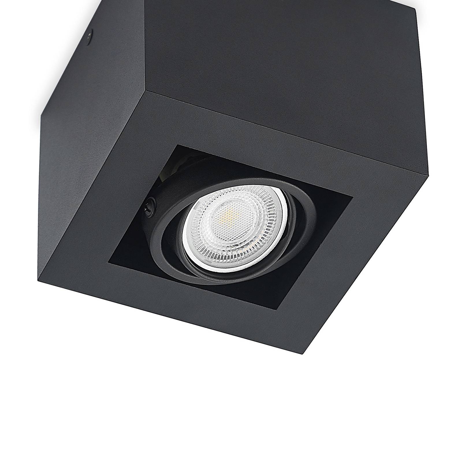 Faretto Giyan a forma di cubo in acciaio color nero sabbia Giyan è la soluzione perfetta per l'illuminazione di aree private o locali commerciali. L'esterno a forma di cubo è realizzato in acciaio in un tranquillo colore nero sabbia. All'interno dell'apparecchio è possibile inserire una sorgente luminosa GU10 e la portalampada inclinabile consente di illuminare in due direzioni diverse. Un morsetto a innesto rapido consente un'installazione semplice e senza viti, garantita da un meccanismo a molla resistente, sicuro e privo di attrezzi. L'apparecchio a plafone Giyan può essere abbinato ad altri apparecchi della serie, a seconda delle esigenze, per creare un'impressione complessiva armoniosa.