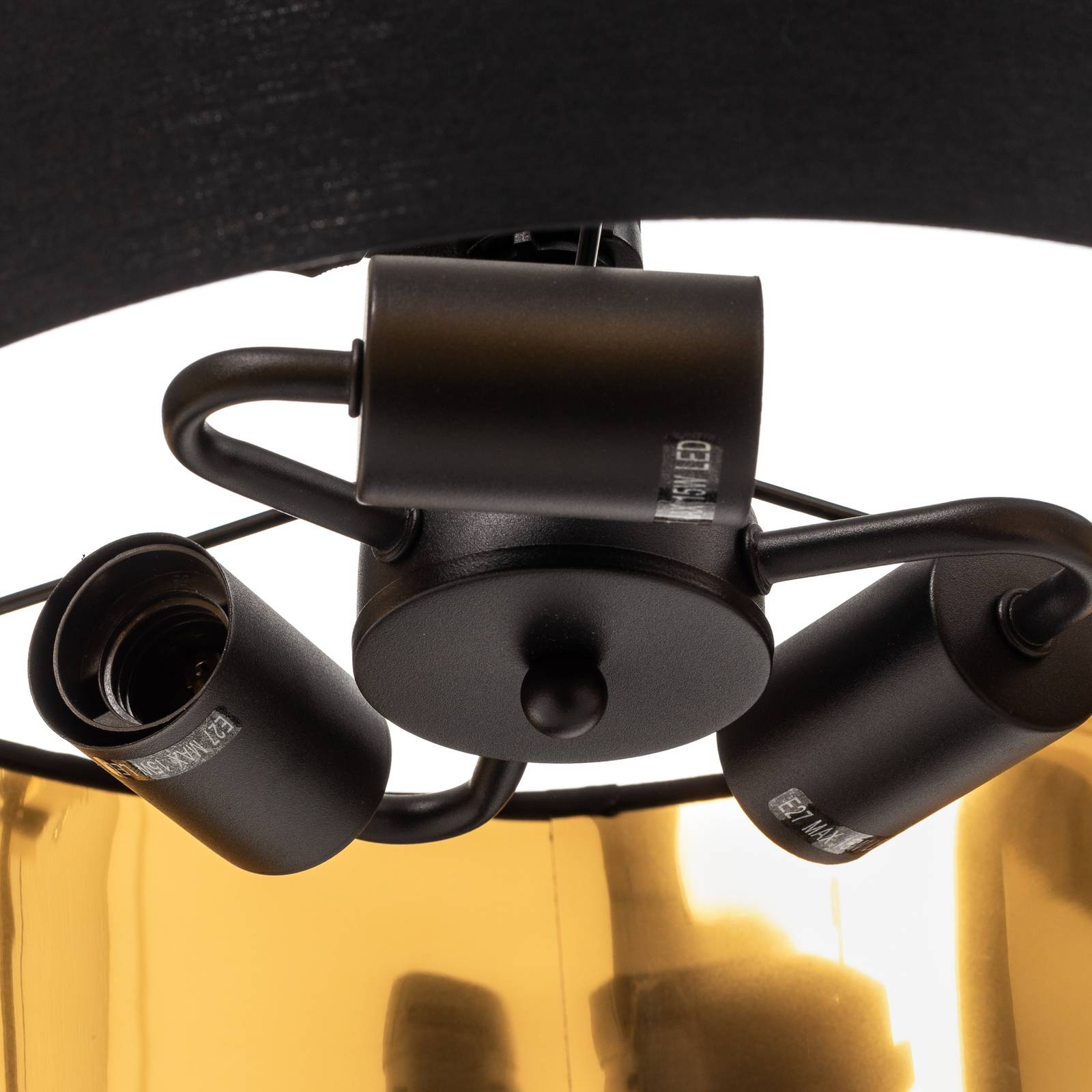 Lampada da soffitto rotonda Heleni in contrasto cromatico nero-oro - ideale per un sistema a binario trifase La lampada da soffitto Heleni si è fatta carico di illuminare in modo accogliente i soggiorni. Si tratta di un paralume rotondo in tessuto con un'eccitante combinazione di colori. Le pareti esterne sono tenute in un semplice nero, mentre l'interno si presenta in un sorprendente oro. La lampada da soffitto Heleni è dotata di tre prese, che possono essere equipaggiate con le lampadine corrispondenti. L'illuminazione priva di abbagliamento è garantita dalle pareti opache del paralume e si adatta perfettamente a un soggiorno o a una camera da letto