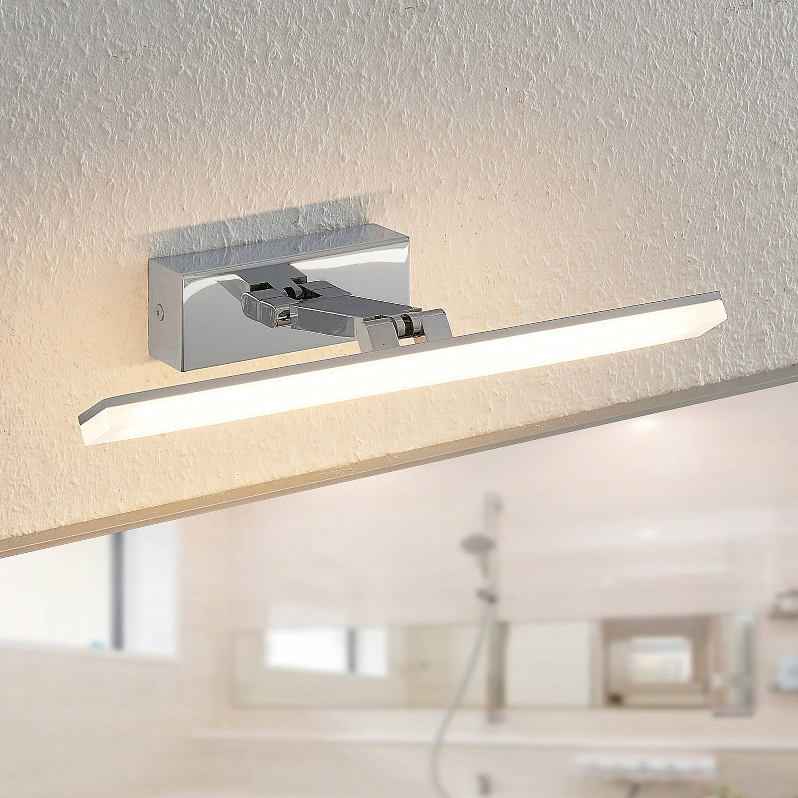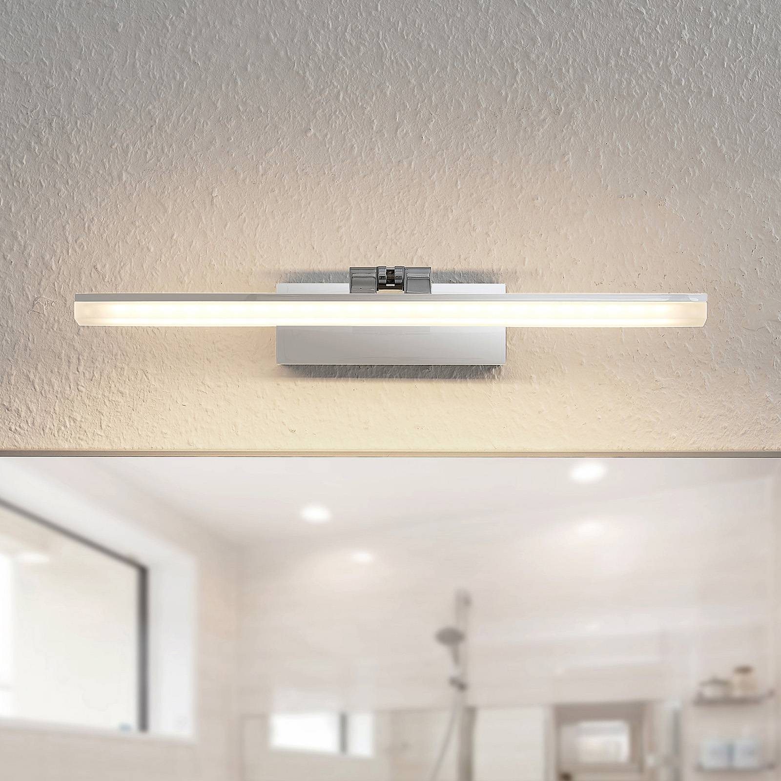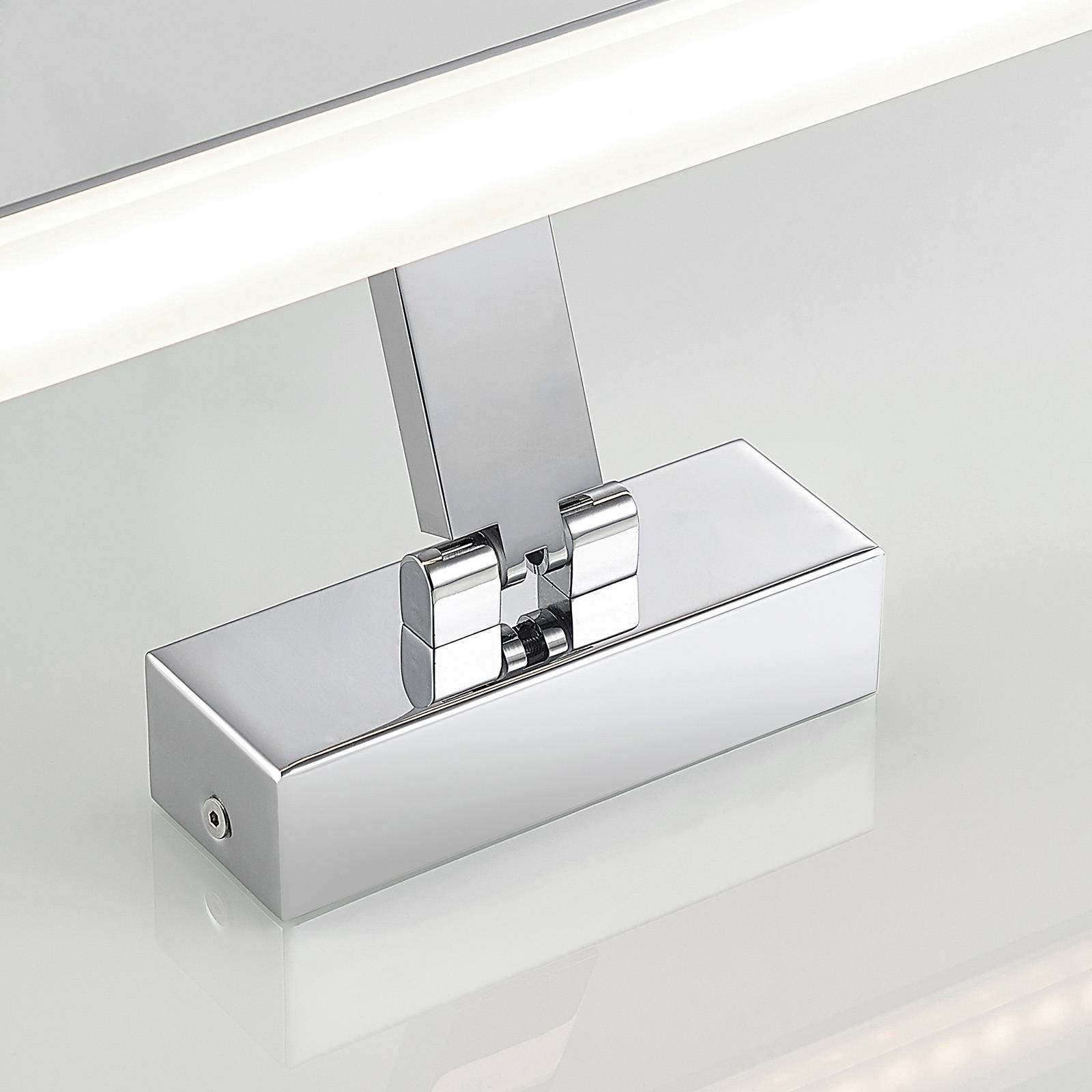 Lampada da parete a LED cromata Soey con testa orientabile, IP44 Soey è progettato per l'uso nei bagni e in altre stanze umide e porta una luce piacevole nella stanza o attraverso lo specchio in modo efficiente dal punto di vista energetico. È proprio lì che si beneficia del fatto che la testa della luce può essere ruotata e quindi allineata con precisione. In questo modo si possono soddisfare in modo ottimale le condizioni in loco. Visivamente, la lampada da parete a LED ha una bella lucentezza cromata, che ha un aspetto nobile e moderno e si abbina bene a molti accessori in bagno, mentre IP44 è sinonimo di elevata protezione contro l'umidità.
