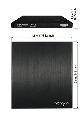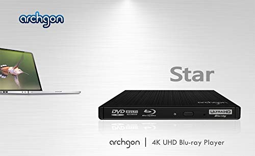 Archgon Star UHD Esterno Lettore 4K-Ultra HD BD Player, Masterizzatore Blu-ray BDXL Burner per PC USB 3.0 USB-C, M-Disc, Cassetto per il caricamento del disco, Box di protezione, Alluminio Nero