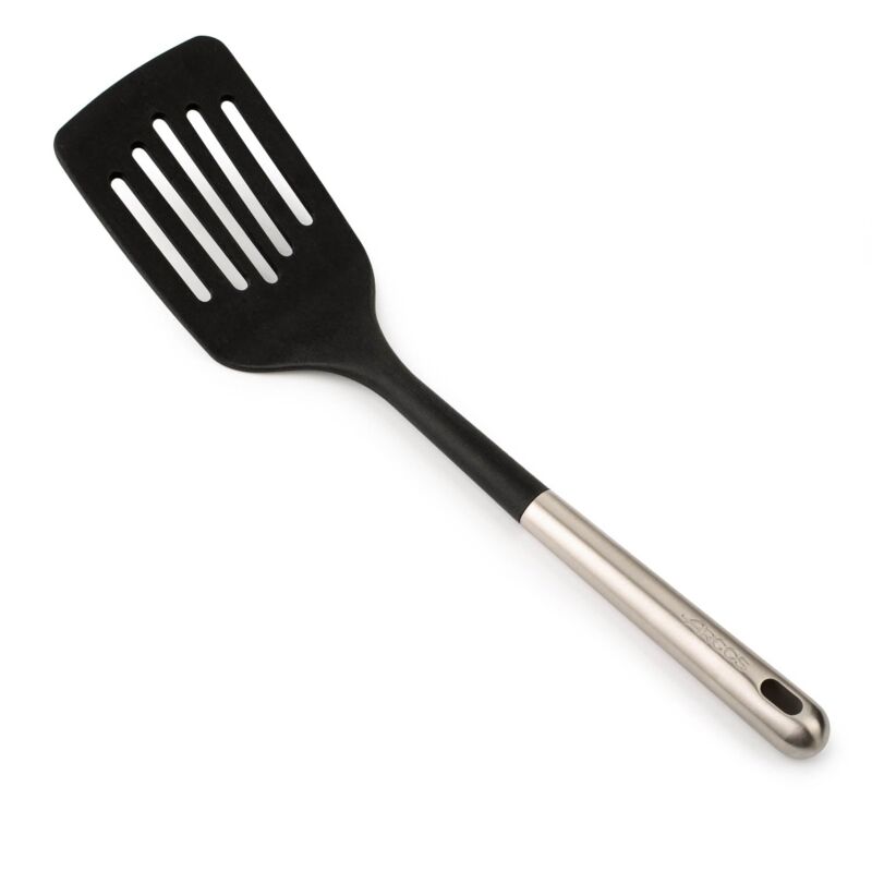 La spatola scanalata di silicone di nero e 339 mm, con il suo design flessibile e leggero, è un utensile indispensabile in cucina. Si usa per girare, mescolare e sbucciare diversi alimenti dalla padella. È un utensile de cucina de forma piatta, rettangolare e flessibile. FLESSIBILE E FORTE: è realizzato in silicone e acciaio inox che ricopre l'intero interno conferendogli a grande flessibilità e resistenza. È dotata di fessure per separare i solidi dai brodi, il che vi faciliterà in cucina. È molto leggero e perfettamente flessibile. FACILE PULIZIA: Questa lingua in silicone è resistente alle alte temperature (fino a 240°C) e ai leggeri urti. Inoltre, può essere pulito sia in lavastoviglie che a mano. Misura 339 mm de lunghezza e ha un peso leggero, che consente un facile uso . DESIGN: offre una presa comoda cheimpedisce lo scivolamento aquando della cottura. È dotato di un foro de per appenderlo e riporlo comodamente in qualsiasi punto della cucina. Il colore nero e il manico grigio