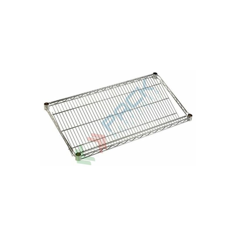 Ripiano aggettante in filo d'acciaio cromato, Mis. 30 x 60 cm, completo di guancette per il fissaggio ai tubolari. Può essere regolato all'altezza desiderata in corrispondenza delle apposite scanalature presenti sui tubolari montanti (ogni 2,5 cm). Portata massima: 25 kg. Da applicare a 2 tubolari fissati a parete (mediante accessorio art. CONWAL o ARMWAL).