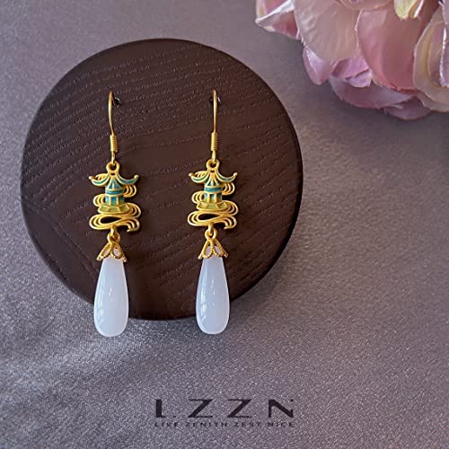 Architettura di palazzo cinese stile cinese esotico elegante orecchini orecchini signora gocce d'acqua ragazza donna regalo di festa, Resina