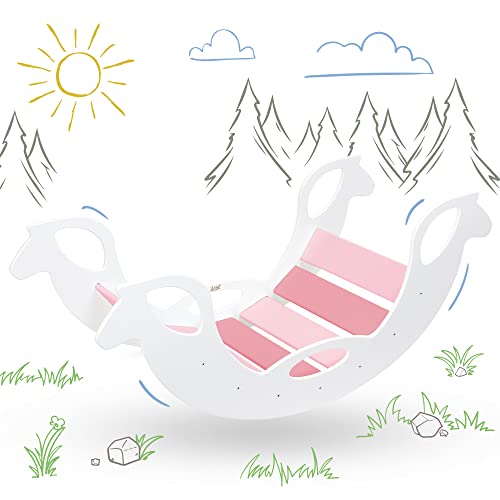 Arco di arrampicata per bambini - Altalena ad arco in legno per interni | Altalena per arrampicata in legno fatta a mano | Set di triangoli con facile montaggio - Cavallo bianco/rosa