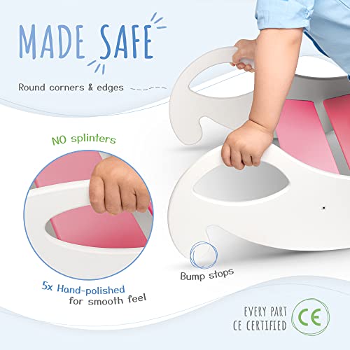 Arco di arrampicata per bambini - Altalena ad arco in legno per interni | Altalena per arrampicata in legno fatta a mano | Set di triangoli con facile montaggio - Jumbo bianco/rosa