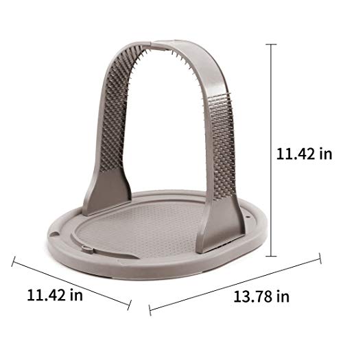 Dimensioni del pettine per massaggio al gatto: 13,147,3 cm di lunghezza x 29 cm di larghezza x 28 cm di altezza. La confezione include 2 arco di montaggio e 1 base in plastica. Hai solo bisogno di inserire la parte inferiore della colonna dell'arco nella base, quindi unire la parte superiore della colonna dell'arco.
