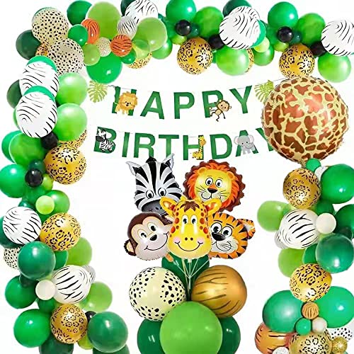 Kit arco ghirlanda di palloncini, animali della giungla Festa di compleanno di palloncini, decorazioni per ragazzi e ragazze, 148 pezzi