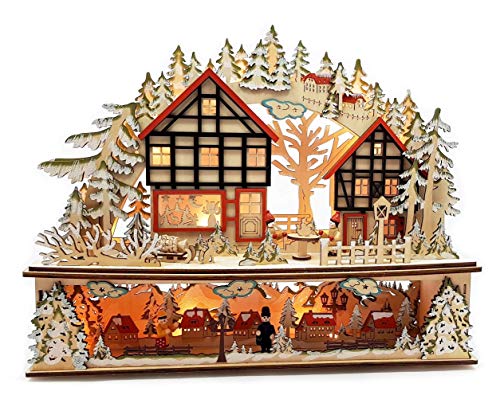 Arco di luci a LED con piedistallo incluso trasformatore, paesaggio natalizio con paesino