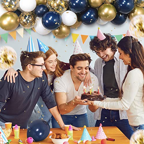 Arco Palloncini Blu Oro - questo kit di arco con palloncini blu include,30*12"Palloncino blu navy,15*5" Palloncino blu navy,30*12" Palloncino bianco,15*5" Palloncino bianco,15*12" Palloncino oro con lustrini,15*12"Palloncino metallizzato oro da,1*catena per palloncini,1*punto focale, 1*Rotolo di coriandoli da 10 m,nastro d'argento da 10 cm e colla a pois forniscono un perfetto pacchetto di palloncini fai da te per qualsiasi decorazione per feste