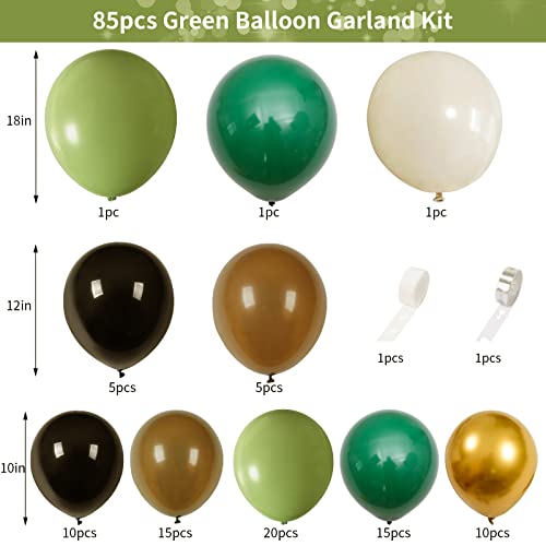 Kit per arco per palloncini, verde, verde salvia e nero, kit di ghirlande per palloncini riutilizzabili, verde scuro e marrone oro, per feste di compleanno, e feste a tema safari nella giungla
