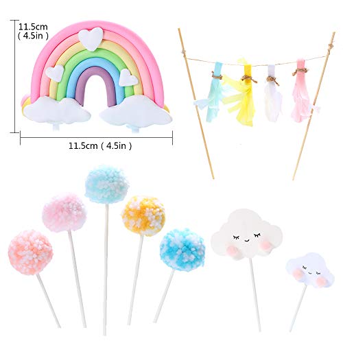 ♥ Pacchetto valore: riceverai 1 pezzo di topper arcobaleno, 5 pezzi di topper colorati a forma di palloncino, 2 pezzi di simpatici plettri di nuvole e 1 pezzo di nappa colorata, il nostro set di decorazioni per torte soddisferà le tue esigenze di decorazione della torta.