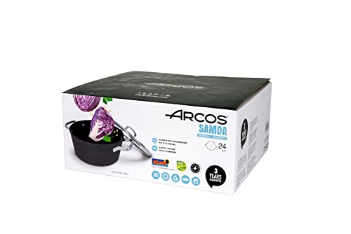 Arcos Serie Samoa | Pentola Antiaderente 20 cm e 2,6 L | Alluminio Forgiato | Adatto a qualsiasi cucina | Anse Acciaio inossidabile effetto freddo | Lavabile in lavastoviglie | Nero | FULL INDUCTION