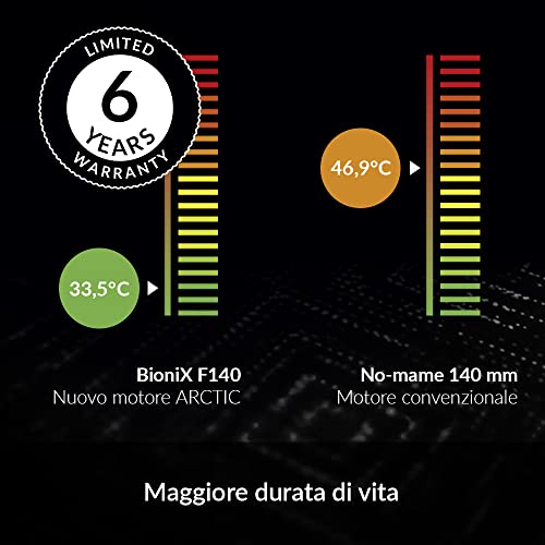TEMPERATURA MOTORE BASSA: La temperatura del motore inferiore a 10° C raddoppia la durata. I ventilatori BioniX hanno una durata di vita di 4 volte più lunga grazie alla bassa temperatura della bobina