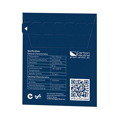 ARCTIC Thermal Pad (50 x 50 x 0,5 mm) - Pad Termico, Eccellente Conduzione del Calore attraverso Silicone e Stucco Speciale, Bassa Durezza, Installazione Facile, Manipolazione Sicura - Blu