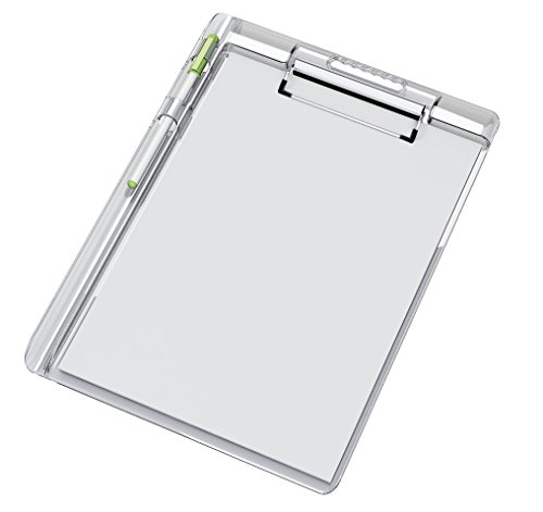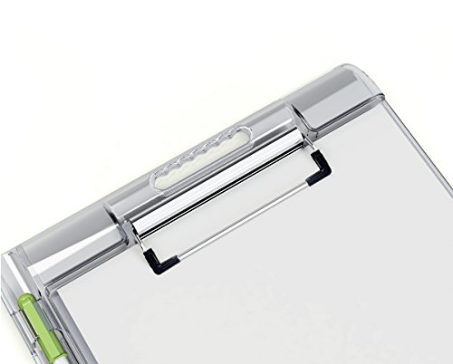 ARDA Portablocco A4 | Cristallo Trasparente con Pinza in Metallo e Pratico Alloggio Portapenne
