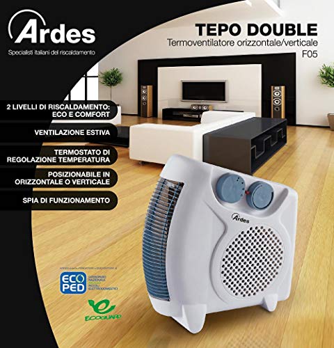Ardes AR4F05 Termoventilatore Tepo Double a 2 Posizioni con 2 Potenze e Termostato, Bianco
