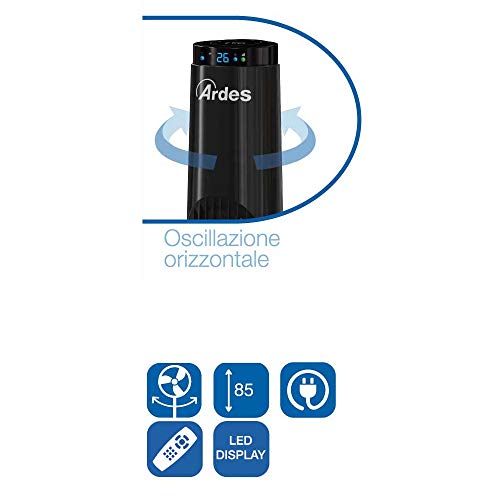 Ardes AR5T85R Ventilatore a Torre Display LED con Telecomando, 40 W, Nero, 82 cm