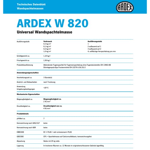 ARDEX W 820 SUPERFINISH HandSpritzRoll - Stucco da 25 kg