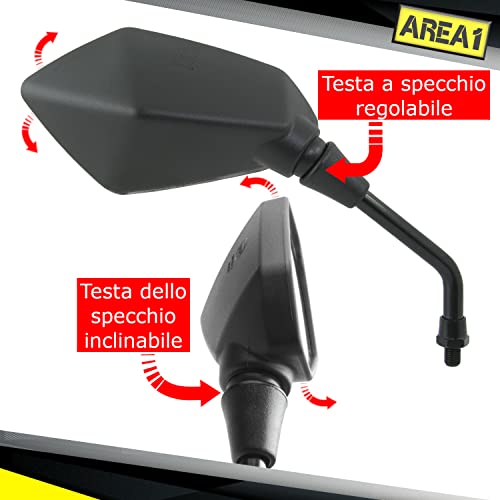 Area1 Specchietti Specchietto Moto Omologato Universali Retrovisori per Moto Omologati (2xM10 filetto destro) compatibili con BMW KTM Yamaha Honda Kawasaki KSR Moto Suzuki Triumph Aprilia Ducati Beta