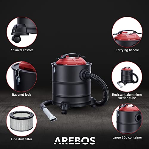 AREBOS | Aspirapolvere per ceneri | contenitore di raccolta da 20 l | 1200 W | con filtro HEPA | tubo flessibile di aspirazione