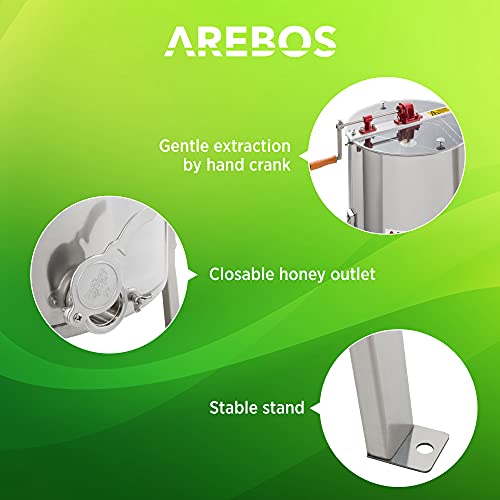 Arebos Estrattore di Miele, Smielatore Manuale, Acciaio Inox, 4 Telai, Apicoltura
