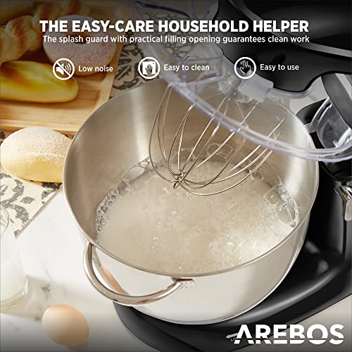 Arebos Impastatrice Robot da Cucina 1500W | Nero | Mixer Cucina 6L | Basso Rumore | Multifunzione Impastatore Planetario Professionale con Ganci, Frullare | 6 Velocità con Impulso Regolabile