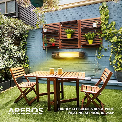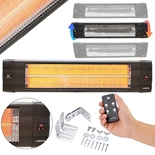 Arebos Riscaldatore radiante a infrarossi 2500 W | con telecomando | 3 impostazioni di calore | inclinazione 90° incl. materiale di montaggio | nero