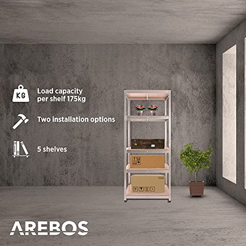 Arebos scaffalatura | 75 x 45 x 180 cm | 875 kg portata | Sistema di facile installazione grazie a bussola