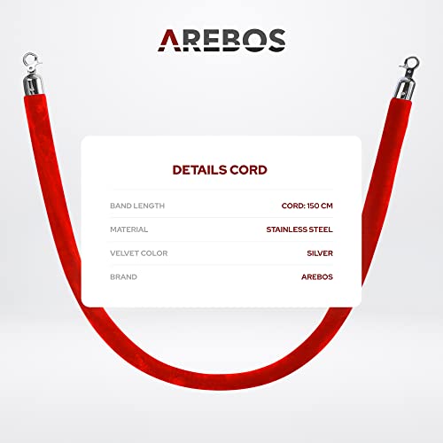 Arebos Transenne Corda per Sistema Guida Persone Barriera della Corda Rossa Corda con Moschettoni argento Barrier Rope Controllo della Folla Per Edifici Pubblici Dell'Hotel Ristorante Cinema 1.5M