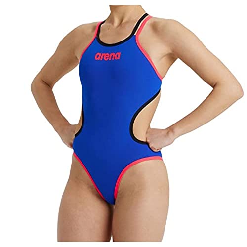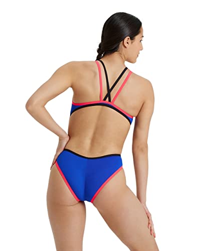 ARENA Costume da Bagno Intero MaxLife con Retro Incrociato, Blu Fluo/Rosso Fluo/Nero, 36 Donna