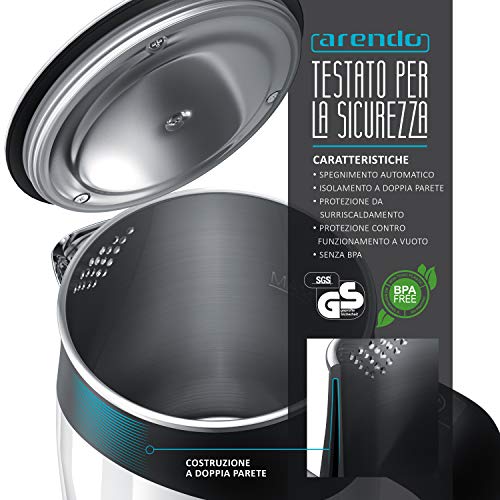 Arendo - Bollitore Elettrico da Mezzo litro Modello Single - Mini bollitore - capacità 0,5l - 5 Livelli di Temperatura Regolabili - Doppia Parete - Maneggevole e Compatto - Bianco Nero