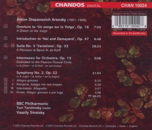 Arensky: Sinfonia N. 2 Suite N. 3