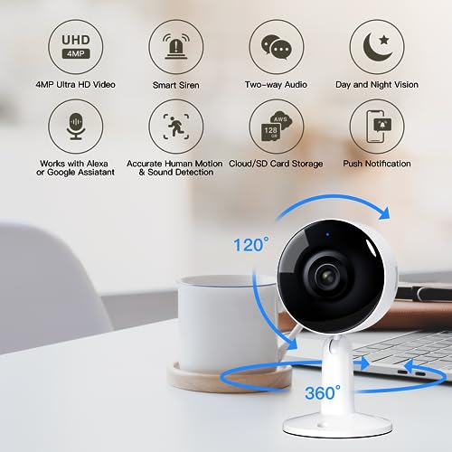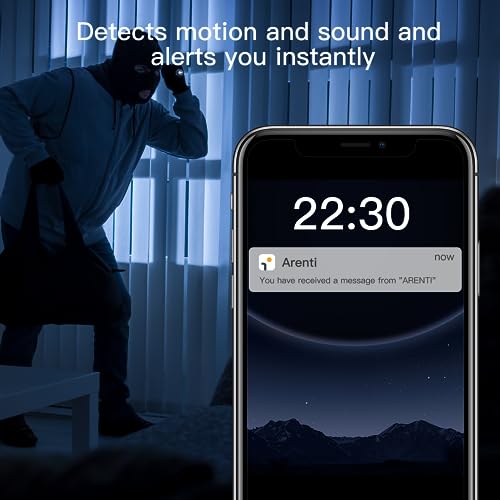 ARENTI Telecamera Wi-Fi Interno, 4 MP UHD Videocamera Sorveglianza, Telecamera di Sicurezza con app, Audio Bidirezionale, Rilevamento del Movimento e Suono, Visione Notturna, Funziona con Alexa
