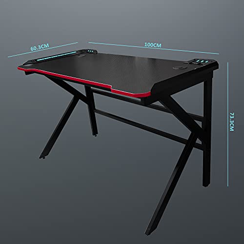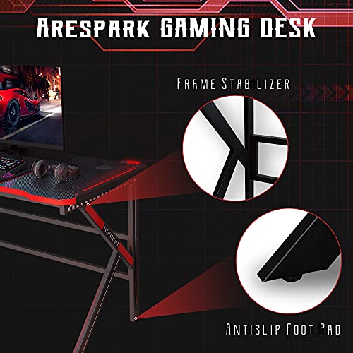 Arespark Scrivania Gaming, 140 cm Tavolo Gaming con Potente Gestione Dei Cavi, Robuste Gambe a K In Metallo, Scrivanie PC Ergonomica da Tavolo in Fibra di Carbonio (140 x 60 con RGB)