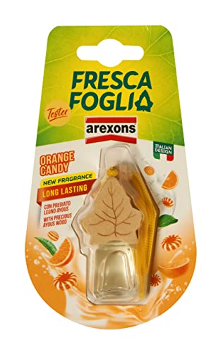 AREXONS 19561 Fresca foglia Boccettino Fragranza Orange Candy 4,5 ml, Profumatore Auto Liquido, Profumatore Ambiente Auto con Tappo in Legno Diffondi Profumo