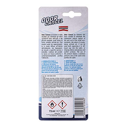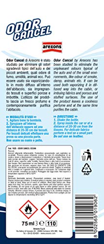 AREXONS ODOR CANCEL 75 ml Igienizzante auto abitacolo fragranza Ocean, profumatore auto elimina odori, trattamento abitacolo igienizzante e sanificante, per ambiente interno e superfici in tessuto