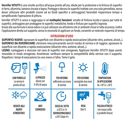 Formula gel - Lo smalto verniciante è strutturato in forma di gel morbido per evitare colature ed assicurare un'ottima pennellabilità. Vernifer non necessita l'applicazione di un fondo anticorrosivo.