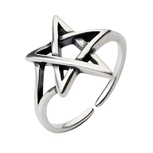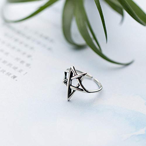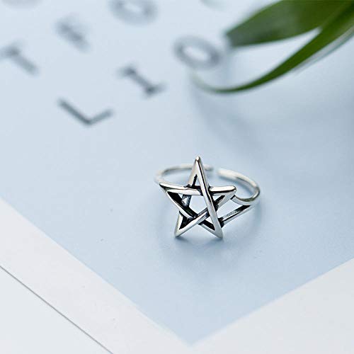 Argento 925 Anello Donna Regolabile,Pentacolo Argento Antico Per Donne Ragazza Gioielli Scintillanti Usura Simpatico Regalo Di Compleanno Studente Banchetto In Stile Essenziale Corrispondenza Abbi