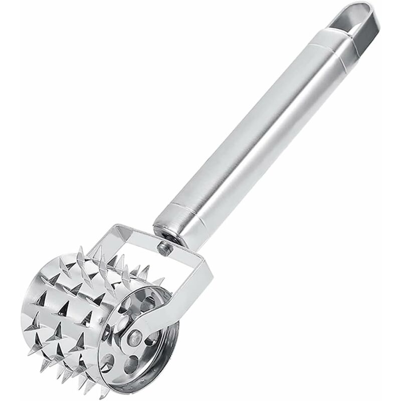 Facile da usare: il batticarne è progettato con rulli per intenerire la carne rotolando avanti e indietro, risparmiando tempo e fatica, rendendo la carne più morbida e aggiungendo più sapore di marinata. E facile da pulire, basta immergerlo in acqua tiepida e sapone per alcuni minuti, quindi pulirlo con un pennello. Testa a martello a 360°: ci sono punte affilate sulla testa del martello per carne, che possono rompere la carne dura fibre. Rotazione di 360° per condire e mantenere il gusto salato, niente più carne dura, puoi davvero sentire il sapore ad ogni boccone. Materiale di alta qualità: il martello per carne è realizzato in acciaio inossidabile di alta qualità. qualità, con struttura solida e superficie levigata. Il design della punta dell'ago e del rullo lo rende più comodo da usare. Manico di alta qualità: il martello per carne è progettato con un manico umanizzato lungo 13 cm, che è facile da maneggiare.si adatta al palmo della tua mano, antiscivolo e preciso, risparmio di