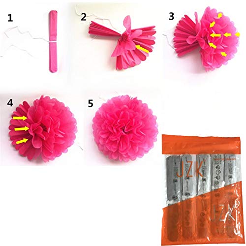 Molto facile da montare: Basta tenere fermo il nastro bianco (già in dotazione) e poi tirare gradualmente i vari petali (già pre-piegata e pre-taglio), e lentamente si vedrà una bella forma che assomigliano a una palla di fiori.